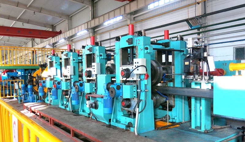 Coil loading car→ single mandrel uncoiler→Pinch and leveling machine →Shear and end welding machine( strip joiner) →floor type accumulator→forming machine→HF welding →Water Cooling→Sizing machine→ Milling type cutting Saw → tube end chamfering machine → hydrostatic testing machine →Run out table→ automatic stacking machine → Warehouse Storage